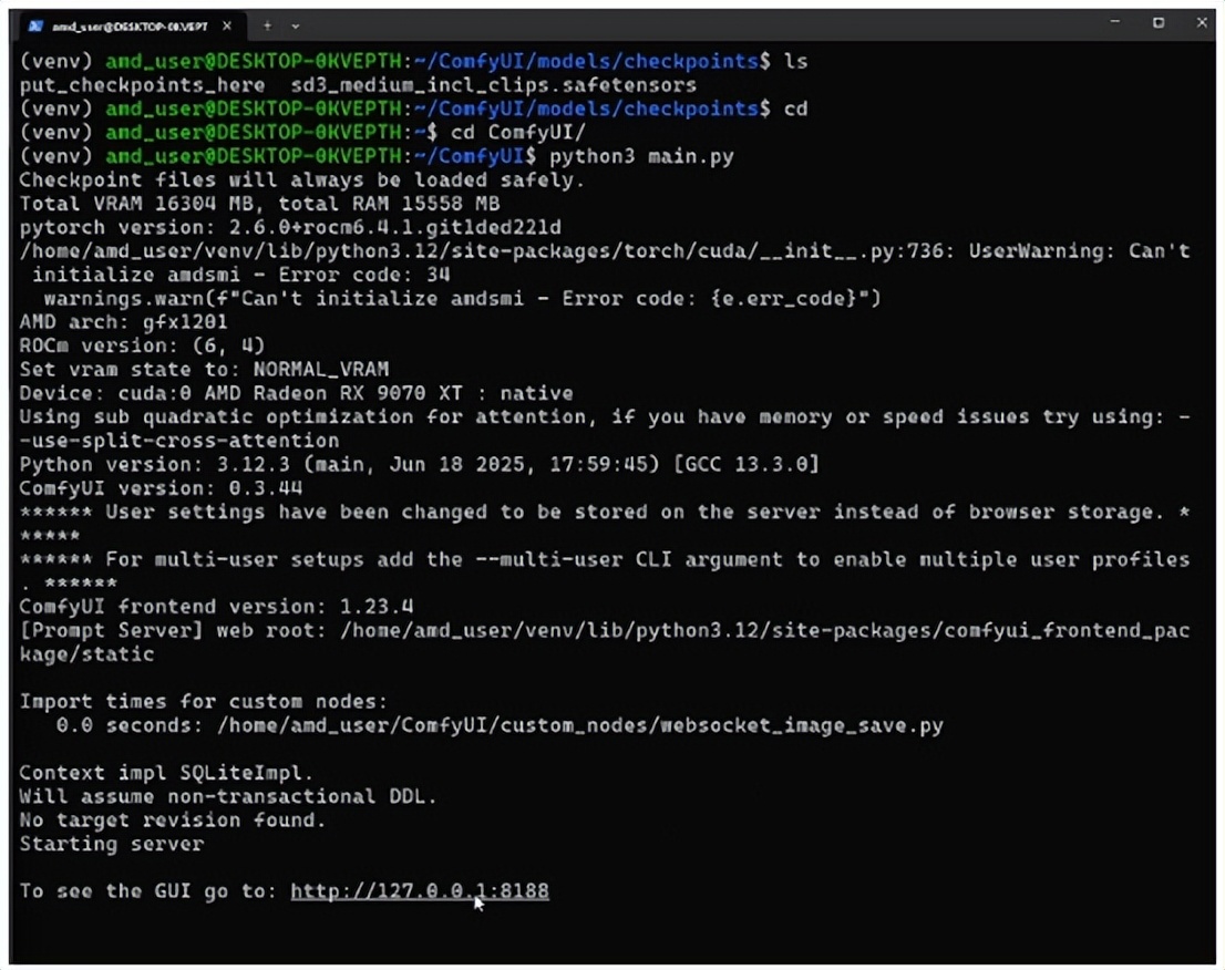 按照本文提供的步骤操作,您即可在 Windows 系统中通过适用于 Linux 的 Windows 子系统(WSL)使用 ROCm 成功运行 ComfyUI,充分释放 AMD Radeon 显卡的强大算力。此方案可将您的 Windows PC 打造成高性能计算枢纽,不仅能够流畅运行 Stable Diffusion 等大型模型,还能以前所未有的便捷性支持各类创意型 AI 应用。欢迎持续关注我们的技术博客系列,或关注AMD官方微信@ AMD 开发者中心,探索如何让您的系统发挥出全部潜能。