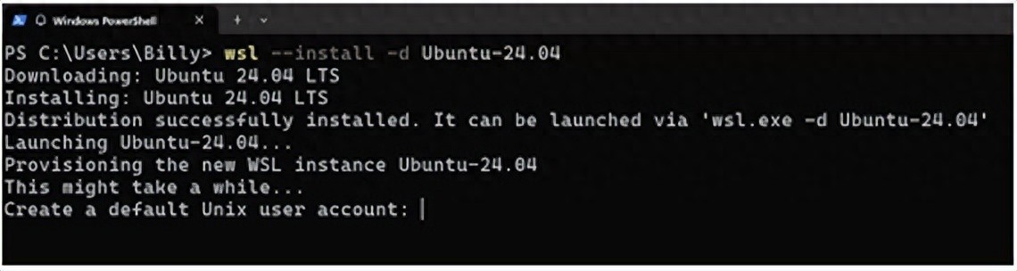 图 1:上图展示了您在安装 WSL 和 Ubuntu 时将看到的界面。